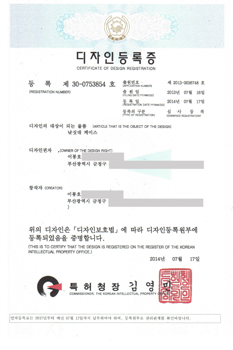 디자인등록증 페이지 정보 작성자관리자 댓글 0건 조회 4,496회 작성일 18-12-18 17:20 본문 디자인등록증 목록 이전글디자인등록증 18.12.18 다음글상표등록증 18.12.18 댓글목록 댓글목록 등록된 댓글이 없습니다.